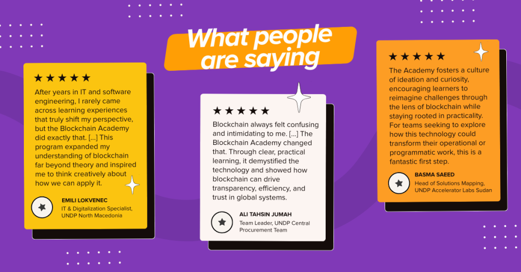 Participants also join the broader UN Blockchain Community of Practice, gaining access to ongoing learning opportunities, peer exchange, and collaboration across the UN system.