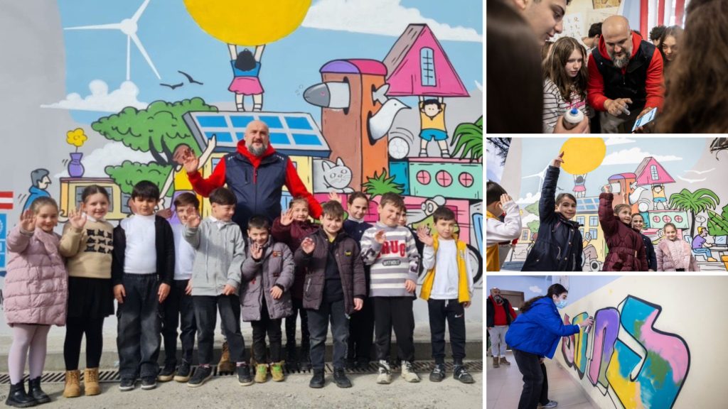 In Poti, Georgia, the campaign moved from imagination to co-creation. A mural developed with illustrator Gamez was painted together with students at a local school, turning the campaign into a hands-on experience and leaving a lasting physical mark on the city.