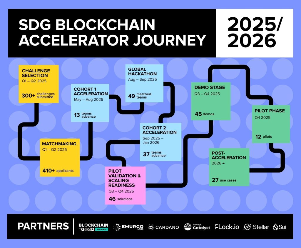 Strategically led by the United Nations Development Programme’s Alternative Finance Lab (AltFinLab), in partnership with the Blockchain for Good Alliance (BGA), EMURGO Labs, FLock Technology Holdings, Stellar Development Foundation, and Sui Foundation, the global initiative helps scale blockchain and decentralized AI solutions to advance the Sustainable Development Goals (SDGs).